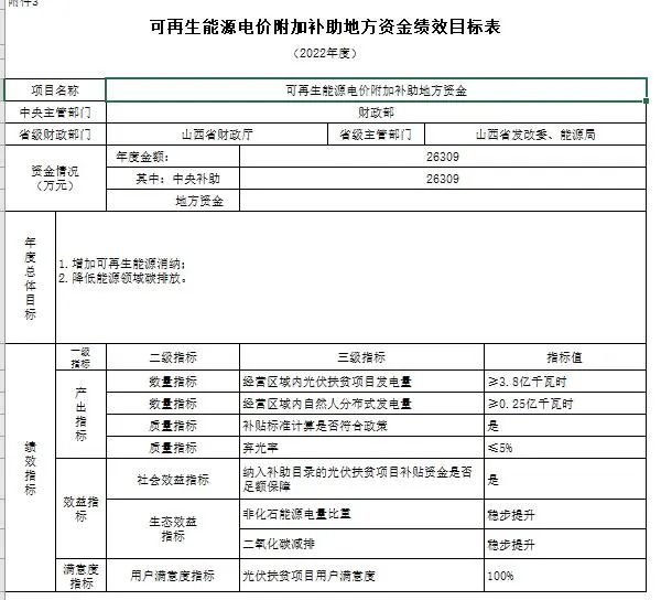 四、為保障資金安全,提高資金使用效率,電網企業(yè)應按年度對補貼資金申請使用等情況進行全面核查,必要時可聘請獨立第三方。為深入貫徹落實《中共中央 國務院關于全面實施預算績效管理的意見》,切實提高財政資金使用效益,請你單位在組織預算執(zhí)行中對照績效目標(附件3)做好績效監(jiān)控,確保年度績效目標如期實現。同時,你單位應按規(guī)定及時上報績效自評結果,績效自評結果將作為分配預算資金的重要依據。
