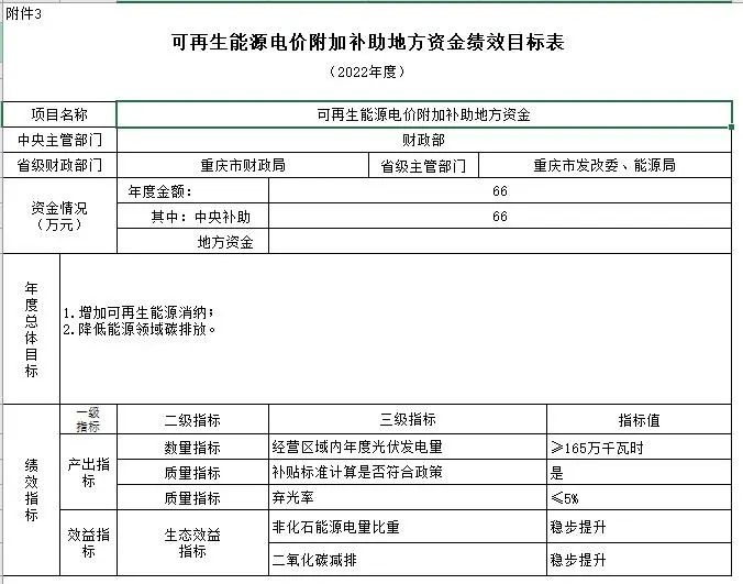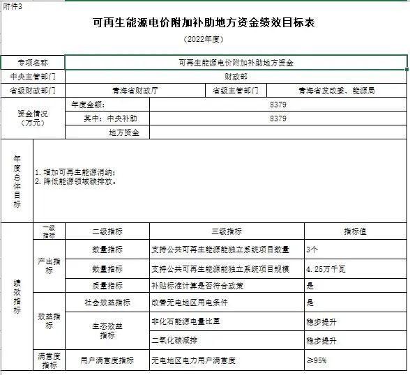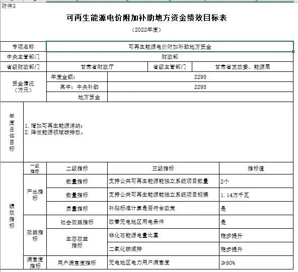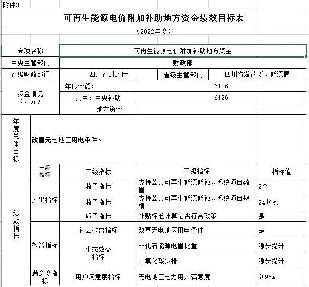 根據《財政部 國家發(fā)展改革委 國家能源局關于印發(fā)<可再生能源電價附加資金管理辦法>的通知》(財建〔2020〕5號,以下簡稱《資金管理辦法》)和你單位申請情況,現撥付2022年度可再生能源電價附加補助資金,資金支付方式按照財政國庫管理制度有關規(guī)定執(zhí)行,具體金額及支付方式見附件2。項目代碼和名稱為“Z175060070001 可再生能源電價附加補助地方資金”,支出列2022年政府收支分類科目:“2116001 風力發(fā)電補助”、“2116002 太陽能發(fā)電補助”、“2116003 生物質能發(fā)電補助”。具體金額見附件2。待2022年預算年度開始后,按程序撥付使用。有關事項通知如下: