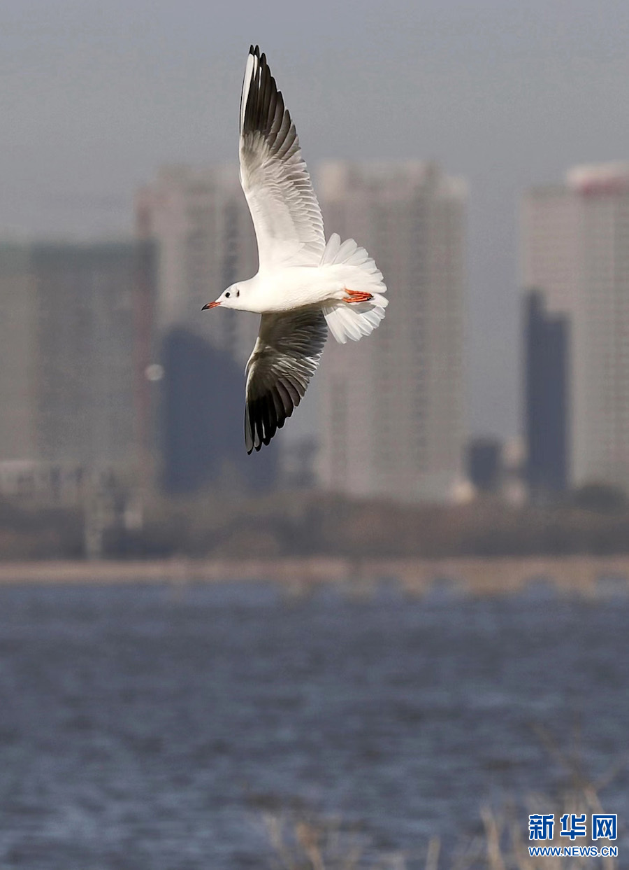 11月23日,河南省平頂山白龜湖國家濕地公園,紅嘴鷗在湖面上自由嬉戲覓食。