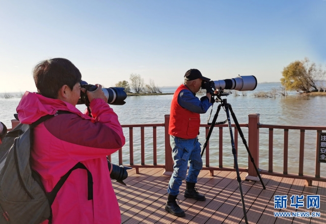 據(jù)介紹,每年11月到次年3月,大批的候鳥飛到這里棲息越冬,形成了白龜湖人與自然和諧共生的景象。