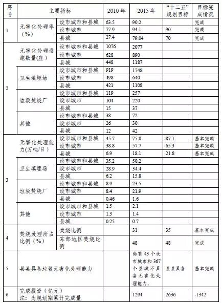附表1 “十二五”全國城鎮(zhèn)生活垃圾處理主要指標(biāo)實現(xiàn)情況