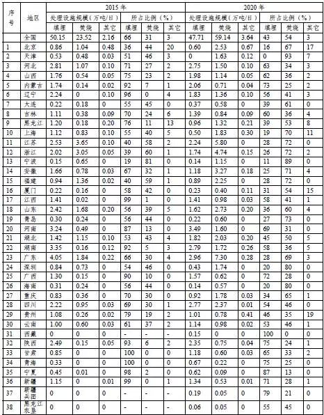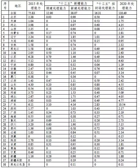 附表2 “十三五”全國城鎮(zhèn)生活垃圾處理設(shè)施規(guī)模單位:萬噸/日