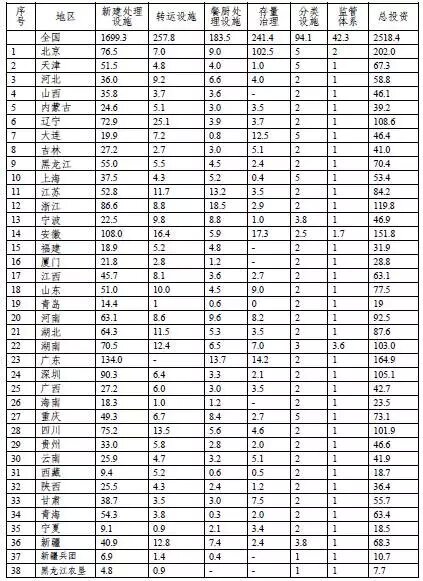 全國城鎮(zhèn)生活垃圾無害化處理設(shè)施建設(shè)總投資約2518.4億元,比征求意見稿增長三成。