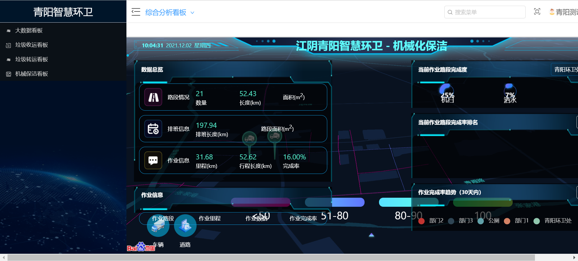 在這種背景下,為了保證青陽環(huán)衛(wèi)的高質(zhì)量和高效率,旌揚環(huán)境也積極利用現(xiàn)代化信息技術(shù),構(gòu)建了一套全面、精細、智能的智慧環(huán)境平臺。