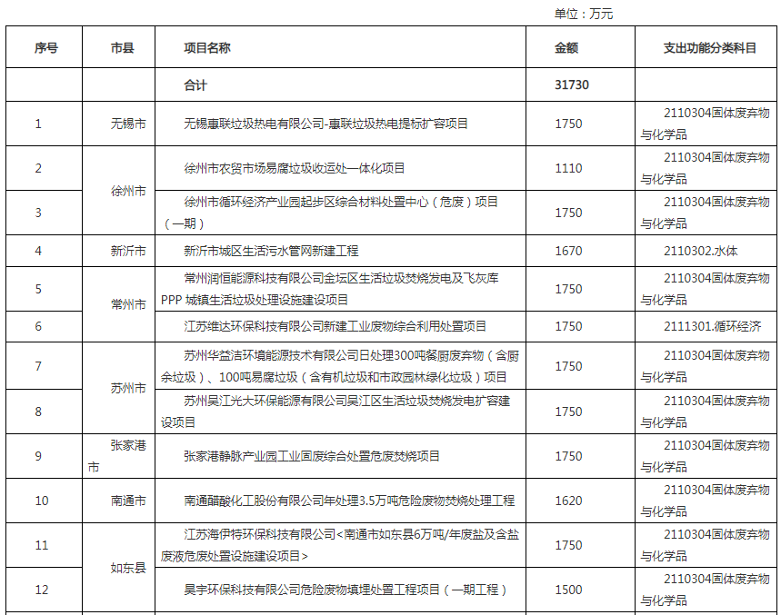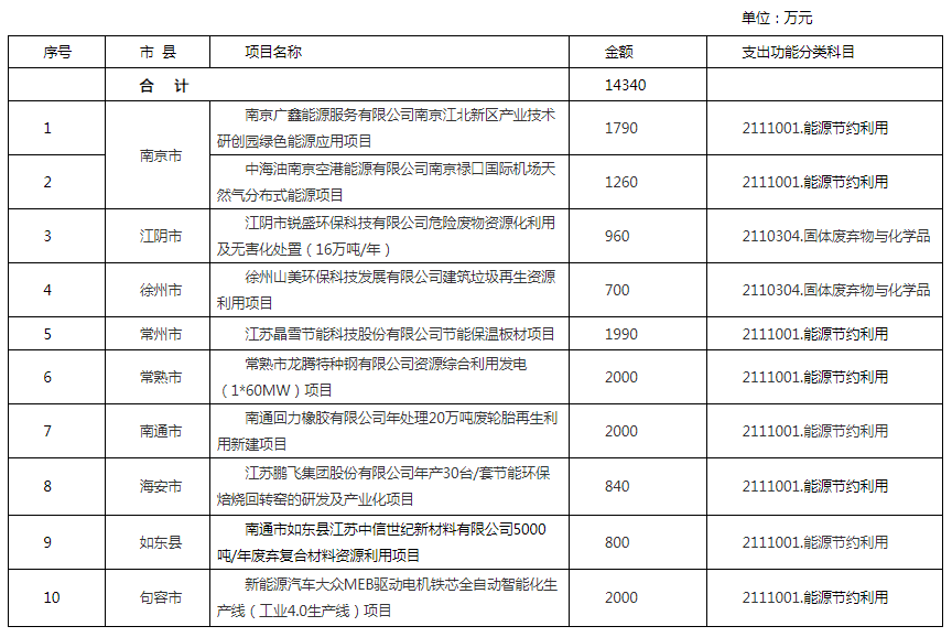 附件:江蘇省2021年污染治理和節(jié)能減碳專項(污染治理方向)中央基建投資預(yù)算(撥款)表