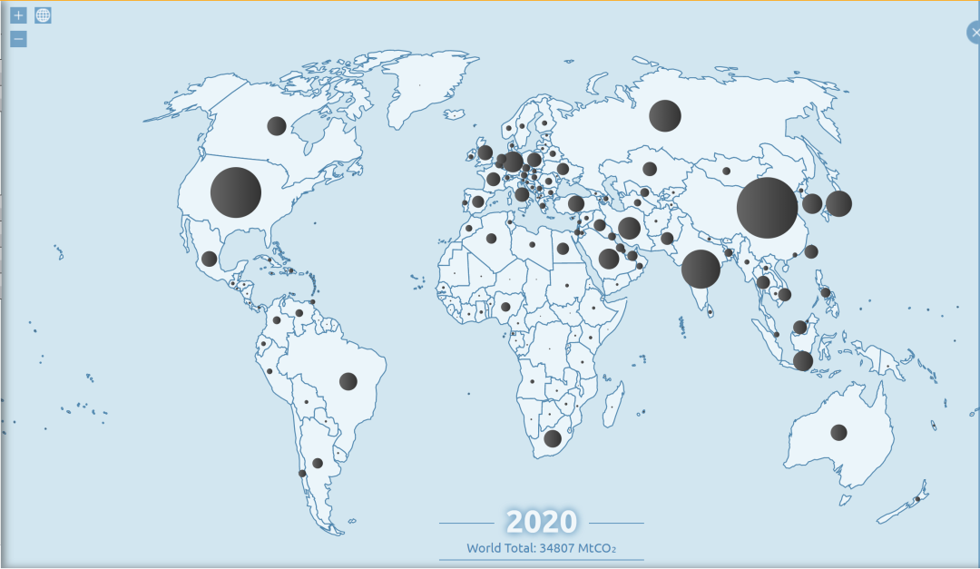2020年全球碳排放分布 資料來源:Global Carbon Atlas
