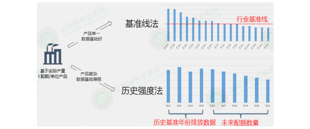 配額分配方法有歷史排放總量、行業(yè)基準線、歷史排放強度等多種。已發(fā)布的發(fā)電行業(yè)配額實施方案采用有調(diào)整系數(shù)的基準線法。結(jié)合有關(guān)專家領(lǐng)導態(tài)度來看,我國碳排放配額分配辦法“最終目標還是要統(tǒng)一實行基準線法”。