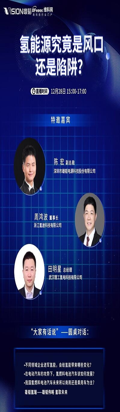 但是,當(dāng)前氫燃料電池也存在成本高企、配套設(shè)施欠缺、技術(shù)不夠成熟等痛點(diǎn)。這一背景下,由專注于氫能電堆研發(fā)與生產(chǎn)的雄韜氫瑞主辦,OFweek維科網(wǎng)氫能承辦的“中國氫能發(fā)展研討會”,將于2021年12月28日在OFweek在線直播平臺舉辦。