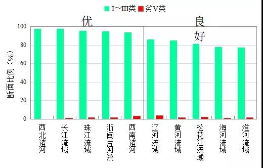 11月,長江、黃河、珠江、松花江、淮河、海河、遼河等七大流域及西北諸河、西南諸河和浙閩片河流水質(zhì)優(yōu)良(Ⅰ——Ⅲ類)斷面比例為90.2%,同比上升3.8個(gè)百分點(diǎn);劣Ⅴ類斷面比例為1.0%,同比下降0.8個(gè)百分點(diǎn)。主要污染指標(biāo)為化學(xué)需氧量、高錳酸鹽指數(shù)和總磷。其中,西北諸河、長江和珠江流域、浙閩片河流和西南諸河水質(zhì)為優(yōu);遼河、黃河、松花江、海河和淮河流域水質(zhì)良好。