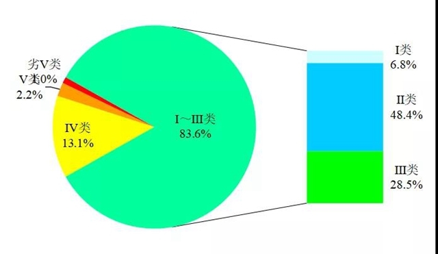 圖1 11月全國地表水水質(zhì)類別比例