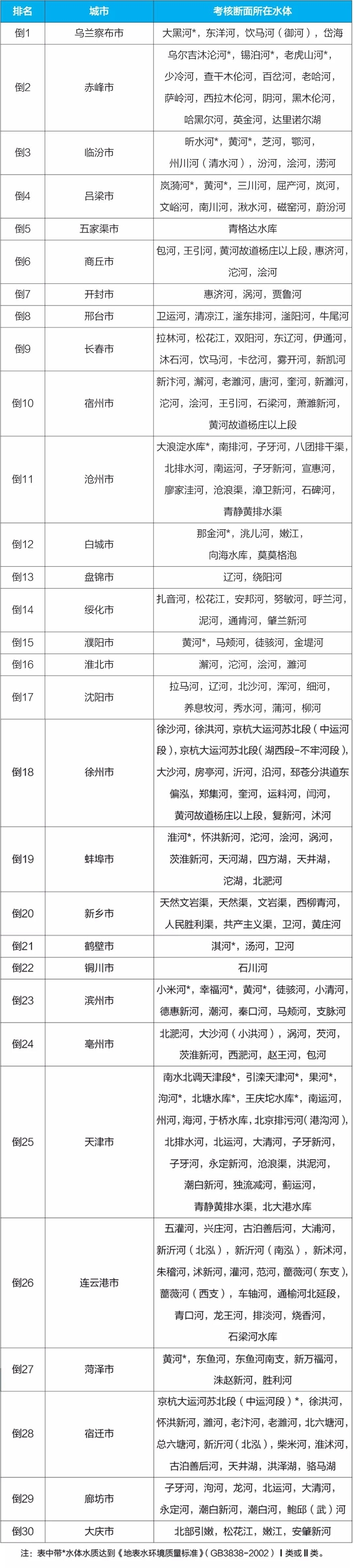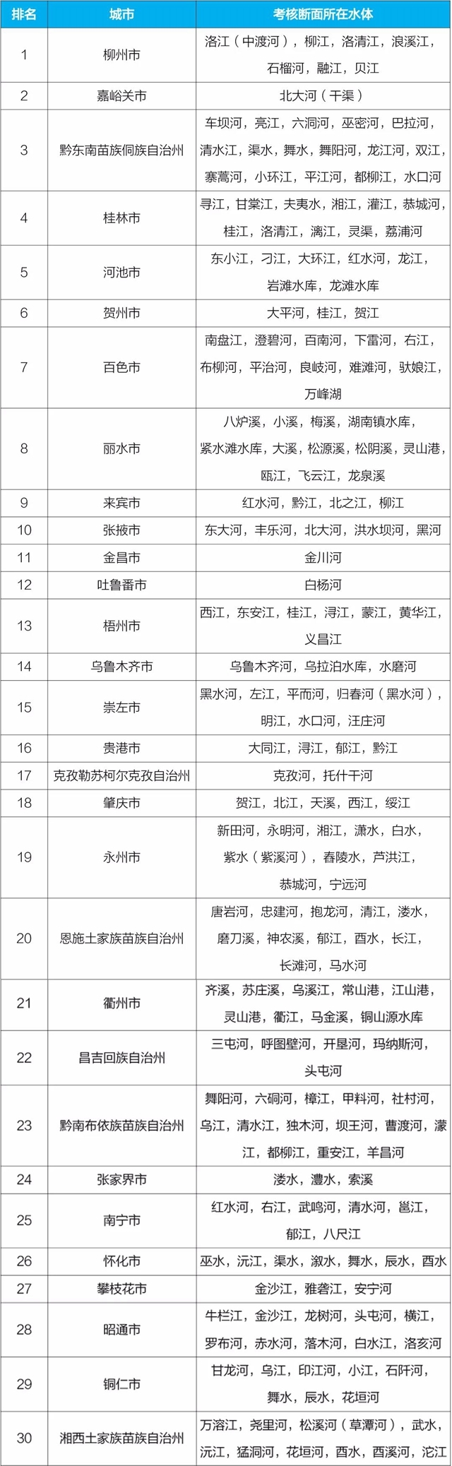 地級(jí)及以上城市國家地表水考核斷面排名