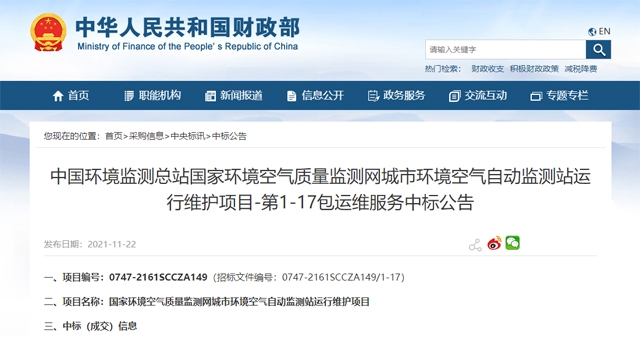 10月25日,中國(guó)環(huán)境監(jiān)測(cè)總站發(fā)布三則招標(biāo)公告,分別是國(guó)家環(huán)境空氣質(zhì)量監(jiān)測(cè)網(wǎng)城市環(huán)境空氣自動(dòng)監(jiān)測(cè)站運(yùn)行維護(hù)項(xiàng)目第1-17包運(yùn)維服務(wù),國(guó)家環(huán)境空氣質(zhì)量監(jiān)測(cè)網(wǎng)城市環(huán)境空氣自動(dòng)監(jiān)測(cè)站運(yùn)行維護(hù)項(xiàng)目第18包運(yùn)維信息集成和網(wǎng)絡(luò)檢查,國(guó)家環(huán)境空氣質(zhì)量監(jiān)測(cè)網(wǎng)城市環(huán)境空氣自動(dòng)監(jiān)測(cè)站運(yùn)行維護(hù)項(xiàng)目第19-21包顆粒物手工比對(duì)檢查。
