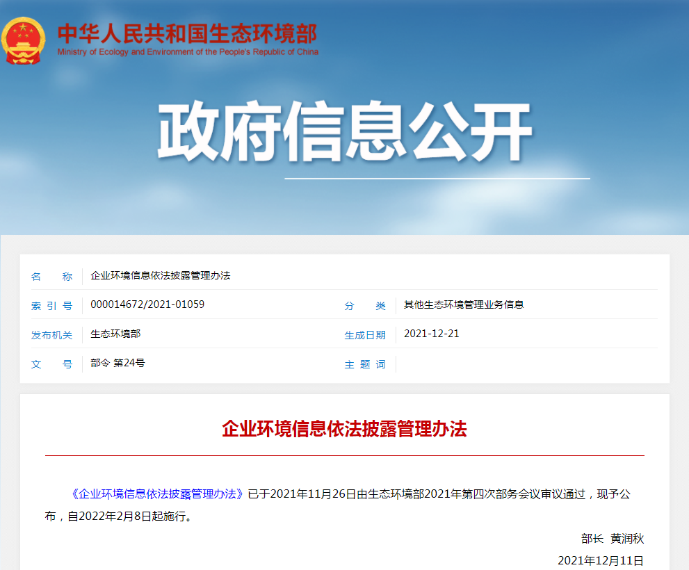 第三條 生態(tài)環(huán)境部負(fù)責(zé)全國環(huán)境信息依法披露的組織、指導(dǎo)、監(jiān)督和管理。