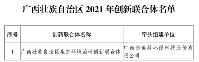 原標題:廣西首批 | 博世科牽頭組建的“廣西壯族自治區(qū)生態(tài)環(huán)境治理創(chuàng)新聯(lián)合體”獲認定