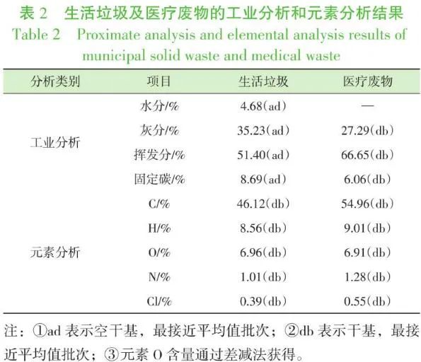 生活垃圾的采樣均按照CJ/T 313—2009生活垃圾采樣和分析方法進(jìn)行,取樣點(diǎn)在垃圾池。醫(yī)療廢物主要來自社康醫(yī)院垃圾池中一固定區(qū)域,在與生活垃圾混合前取樣,因試驗(yàn)在新冠疫情期間進(jìn)行,為安全起見,所取的醫(yī)療廢物樣品先稱質(zhì)量后,再通過高壓蒸汽滅菌,然后再進(jìn)行分析。表1和表2給出了試驗(yàn)期間某次取樣得到的醫(yī)療廢物和生活垃圾的組成與性質(zhì)。