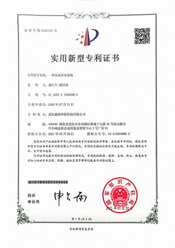 高效凈水濾瓶、節(jié)水工業(yè)純水設(shè)備、凈水器高密封接頭、便于連接的凈水PE管道、凈水RO膜、高效工業(yè)純水處理設(shè)備,六項(xiàng)內(nèi)容先后榮獲實(shí)用新型專利證書。鑫膜環(huán)保的“高能”輸出,為水處理難題提供了多款不同的解決方案。