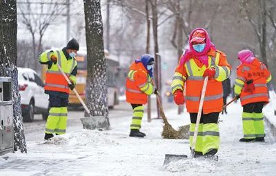 黑龍江省哈爾濱市的環(huán)衛(wèi)工人在街道上進行清雪作業(yè)。新華社記者 王建威攝