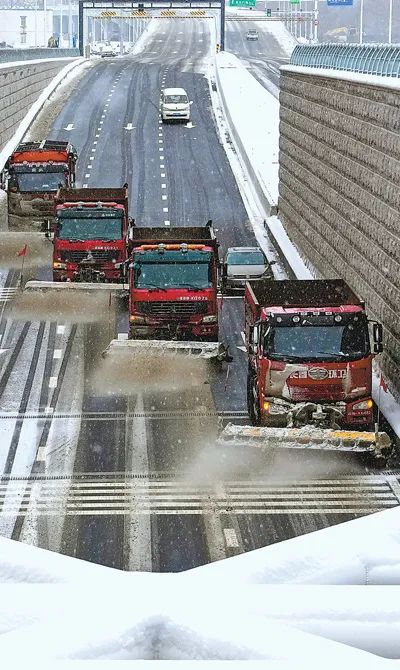 吉林省長春市二道區(qū)城市管理局環(huán)衛(wèi)運輸中心職工駕駛清雪車對機場快速路沿線進行清雪作業(yè)。新華社記者 許 暢攝上海環(huán)衛(wèi)工人在清除積水。楊建正攝(影像中國)