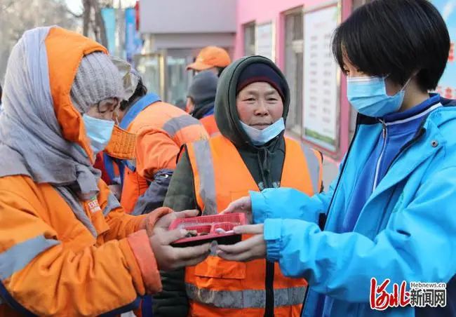臘八節(jié)來臨之際,承德市民族中學(xué)學(xué)生們將親手熬制的臘八粥送到承德市雙橋區(qū)潘家溝街道潘家溝社區(qū)環(huán)衛(wèi)工人手中,為辛勤的勞動者送上寒冬里的溫暖。