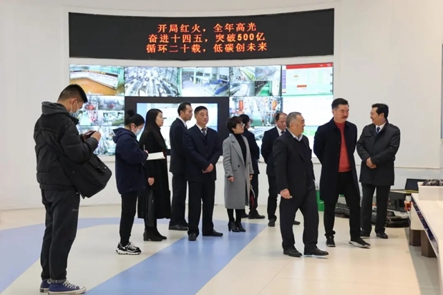 新洋豐楊才學(xué)董事長一行(左三)參觀格林美三元材料制造中心