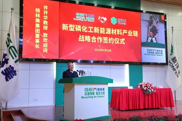 2022年1月10日,格林美股份有限公司(以下簡稱“格林美”)與新洋豐農(nóng)業(yè)科技股份有限公司(以下簡稱“新洋豐”)在格林美荊門園區(qū)正式簽署《磷資源化工新能源材料產(chǎn)業(yè)鏈一體化戰(zhàn)略合作框架協(xié)議》。荊門市人民政府副市長李文震,市政府副秘書長傅強(qiáng),鐘祥市市長楊孟富,掇刀區(qū)副區(qū)長雙暉,新洋豐董事長楊才學(xué),副董事長、總裁楊華鋒,董事、財務(wù)總監(jiān)楊小紅,以及格林美集團(tuán)董事長許開華教授,集團(tuán)聯(lián)合創(chuàng)始人、董事王敏女士等出席簽約儀式。