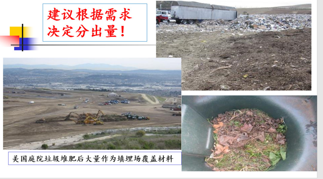 我在現場就問當地管理人員,已經形成這么好的肥料為什么還在填埋場填埋呢?得到的答案是:用不完。這種情況在美國很常見,盡管經過哥倫比亞大學教授的研究論證,認為雖然在填埋場但不算填埋處理,而統(tǒng)計為填埋場覆蓋物,算作回收利用,但是這種現象其實說明,無論貼什么標簽,只要沒人用的就是垃圾,這個情況在全世界都是現實存在的。