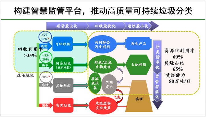 三是,構(gòu)建智慧監(jiān)管平臺(tái),推動(dòng)高質(zhì)量可持續(xù)垃圾分類。垃圾分類靠過去粗放管理方式不可能實(shí)現(xiàn)全覆蓋,必須要借助于信息化手段。要達(dá)成“十四五”規(guī)劃中提到的生活垃圾資源化利用率60%的目標(biāo),生活垃圾就要做到減量最大化、回收最優(yōu)化、填埋最小化,而這些依賴于分類精準(zhǔn)化,說到底要靠監(jiān)管智能化來實(shí)現(xiàn)。