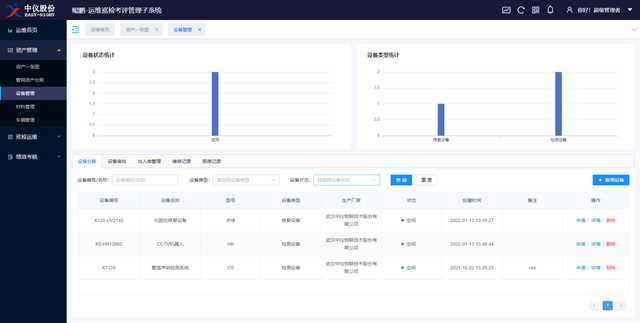 資產(chǎn)管理:加入設(shè)備、材料、車輛等資產(chǎn)管理臺(tái)賬,簡(jiǎn)化設(shè)備申請(qǐng)、維修等使用流程,全面管控日常巡檢工作所需資產(chǎn)。