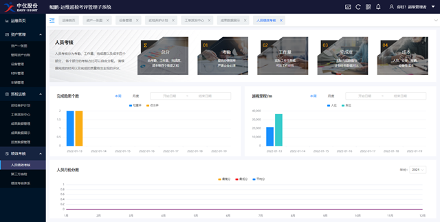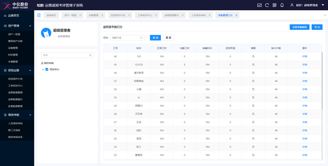 績(jī)效考核:依據(jù)考核人員考勤、工作量以及完成情況等實(shí)現(xiàn)人員的績(jī)效考核;依據(jù)時(shí)間跨度、隱患類型、隱患區(qū)域來進(jìn)行抽樣檢查,考察整個(gè)運(yùn)維效果。