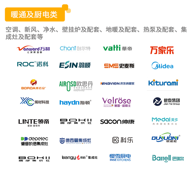 暖通舒適家居及廚電館規(guī)劃在11號館及10-11號連接館集中展示,目前入駐部分品牌有:萬和、創(chuàng)爾特、華帝、萬家樂、諾科、羽順、美的、烯材、史麥斯、博諾安、歐思單、帥康、領(lǐng)帝、博凈、美多、德西曼、德國威勒士、海頓、慶東納碧安、健泰、科樂、廣東燃?xì)獠膳療崴疇t商會(huì)展團(tuán)、店口水暖產(chǎn)業(yè)聯(lián)盟展團(tuán)等共計(jì)165家行業(yè)企業(yè)已報(bào)名參展。