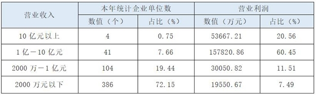 表2 2020年列入統(tǒng)計的各類企業(yè)營業(yè)利潤情況