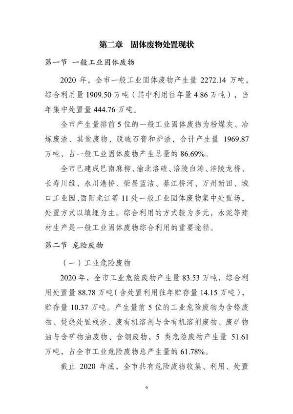 重慶市生態(tài)環(huán)境局編制了《重慶市固體廢物(含危險(xiǎn)廢物)集中處置建設(shè)布局規(guī)劃(2021—2025年)》(征求意見稿),向社會公開征求意見。