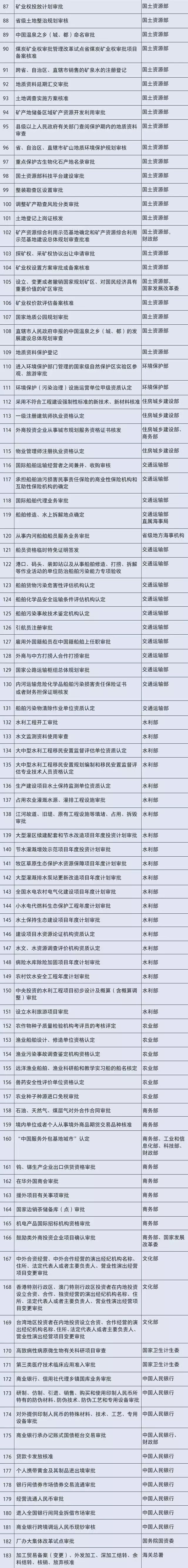 (注:國務(wù)院決定下放的127項(xiàng)行政審批事項(xiàng)中,公布115項(xiàng),其余為涉及修法事項(xiàng)及涉密等事項(xiàng)。)