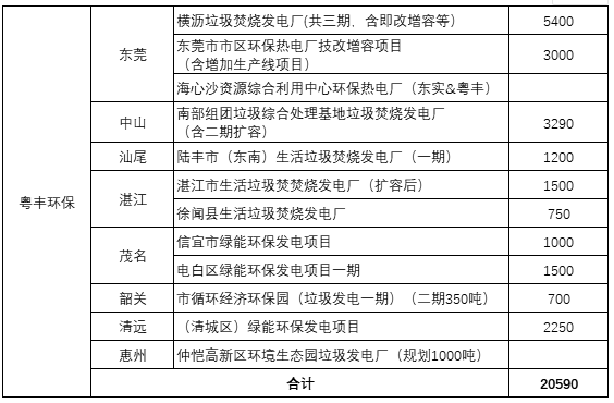 粵豐環(huán)保是國內(nèi)較早從事垃圾焚燒發(fā)電的企業(yè)之一,2014年在港交所主板上市。粵豐環(huán)保的垃圾焚燒之路起始于2003年——負責投運橫瀝垃圾發(fā)電廠項目一期工程。借助橫瀝的項目經(jīng)驗,粵豐環(huán)保開始開拓廣東省內(nèi)其他區(qū)域市場。迄今為止,在廣東境內(nèi),以東莞為根據(jù)地,粵豐環(huán)保已經(jīng)進軍中山、茂名、湛江等8市,以日處理20590噸的投運項目總規(guī)模成為廣東垃圾焚燒市場的第一名。其中海心沙項目與東莞實業(yè)投資集團合作投資。其所有項目具體列表如下: