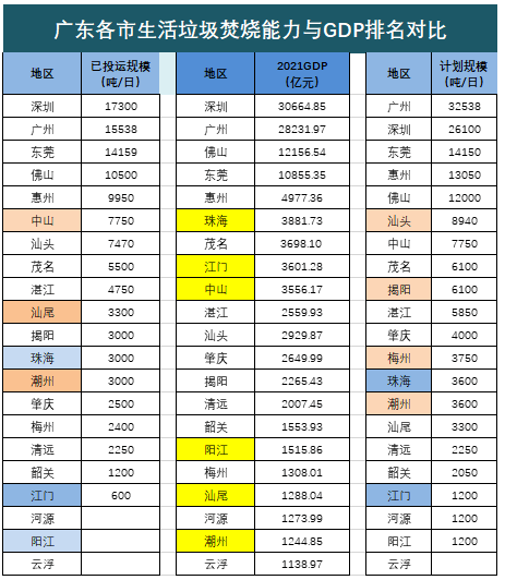 生活垃圾焚燒屬于公共服務(wù),需要政府買單??偟膩砜矗?8個市的生活焚燒規(guī)?;九c各市的經(jīng)濟排名相對應(yīng)。也有一些城市如潮州、梅州、揭陽、汕尾等,當前投運的或者規(guī)劃建設(shè)的焚燒能力遠超其經(jīng)濟排位,而一些城市如江門、珠海等,規(guī)劃的焚燒能力則遠低于其省內(nèi)的經(jīng)濟排位,其中的風險和機會或許值得特別關(guān)注。