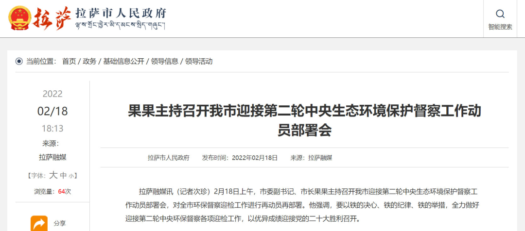 5、果果主持召開(kāi)我市迎接第二輪中央生態(tài)環(huán)境保護(hù)督察工作動(dòng)員部署會(huì),拉薩融媒,2022-02-18