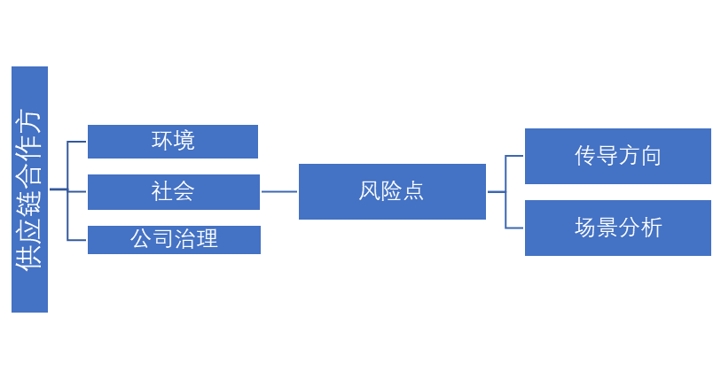 1.企業(yè)自查或委托專業(yè)第三方ESG咨詢,明確供應(yīng)鏈相關(guān)產(chǎn)業(yè)重要ESG風(fēng)險點,進行直接和間接風(fēng)險分析。通過內(nèi)部核查、外部資料參考、盡職調(diào)查等方式,從內(nèi)部明確供應(yīng)鏈ESG實踐、風(fēng)險和能力提升需關(guān)注的要素。