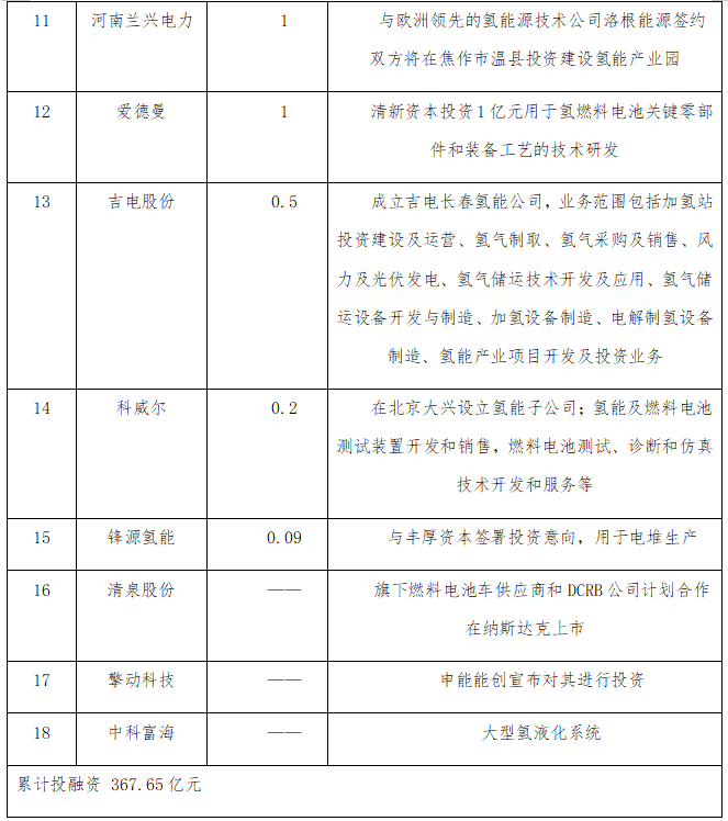 表1 2021年上半年我國(guó)氫能投融資情況(資料來(lái)源:氫能匯,Choice)