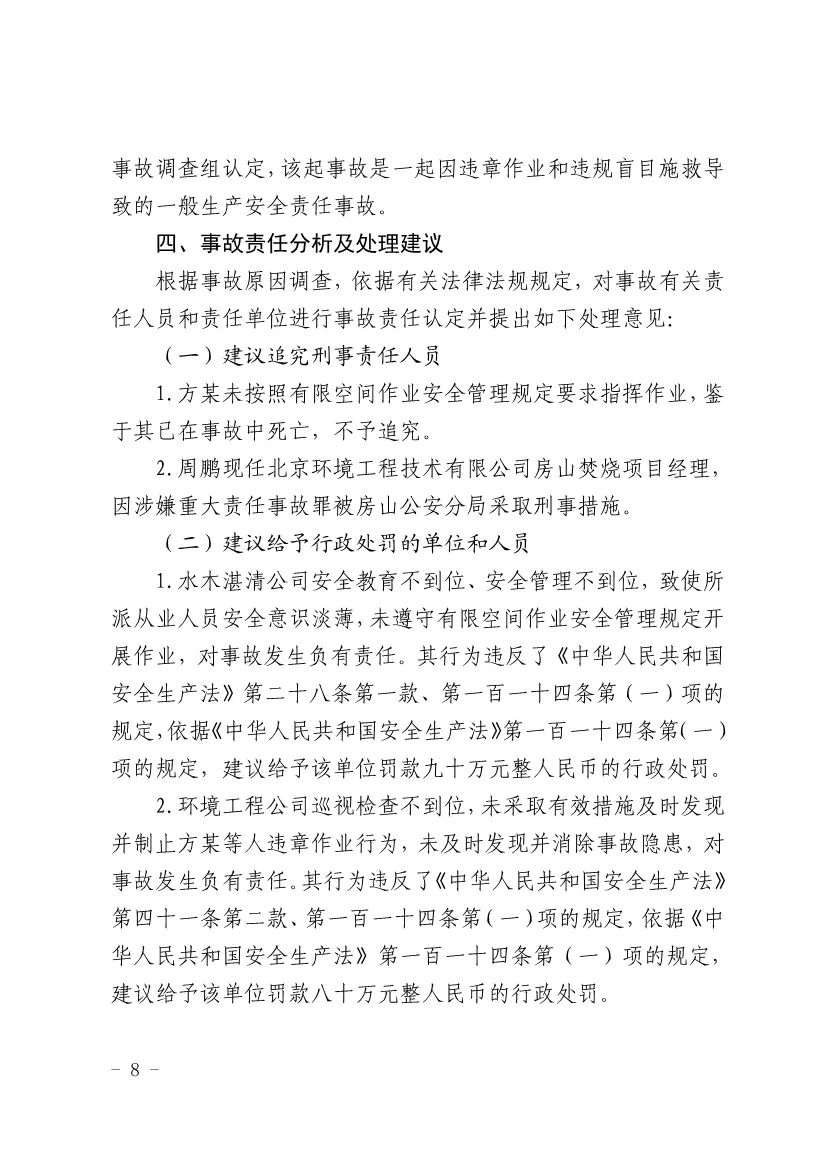 日前,北京市應(yīng)急管理局公布北京環(huán)衛(wèi)集團(tuán)循環(huán)經(jīng)濟(jì)產(chǎn)業(yè)園“11·16”一般生產(chǎn)安全事故調(diào)查報告。報告顯示,2021年11月16日,位于房山區(qū)佛子莊鄉(xiāng)的北京環(huán)衛(wèi)集團(tuán)循環(huán)經(jīng)濟(jì)產(chǎn)業(yè)園內(nèi)發(fā)生一起有限空間中毒事故,造成2人死亡,1人受傷。