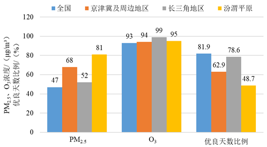 圖3 2022年1—2月全國(guó)及重點(diǎn)區(qū)域空氣質(zhì)量比較