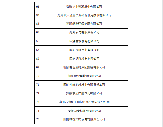 安徽省2021年度發(fā)電行業(yè)重點(diǎn)排放單位名錄