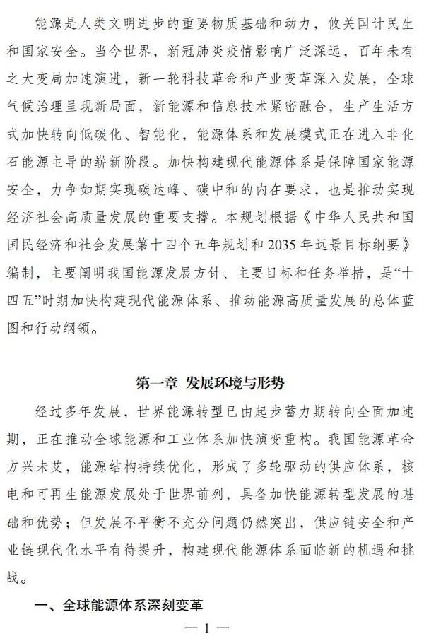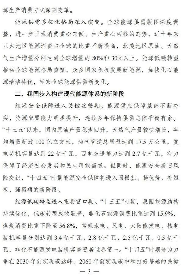 《“十四五”現(xiàn)代能源體系規(guī)劃》