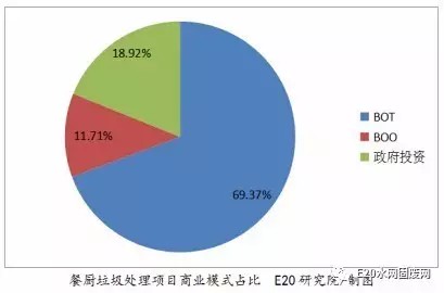 (2)運營模式不成熟。我國餐廚垃圾處理主要本著政府主導、企業(yè)參與的原則,投資模式目前主要有政府投資、BOT、BOO等。據E20研究院統(tǒng)計,目前在我國的餐廚垃圾處理項目中,主要以BOT模式為主。在已知的111個餐廚垃圾項目中,有69.37%的項目采用BOT模式運營。