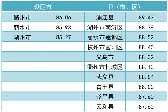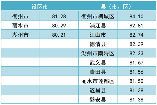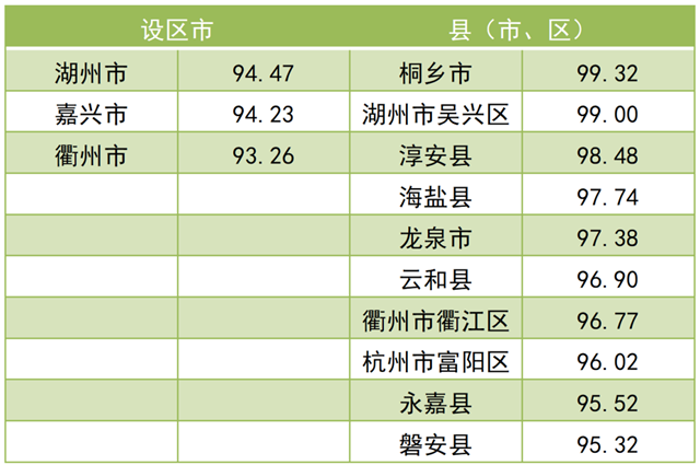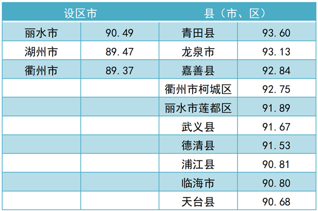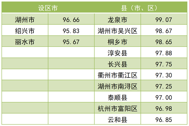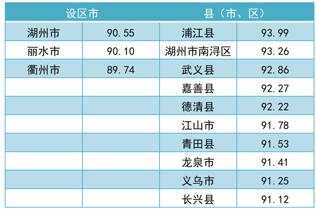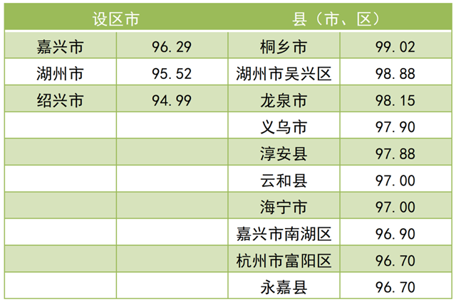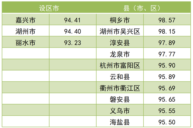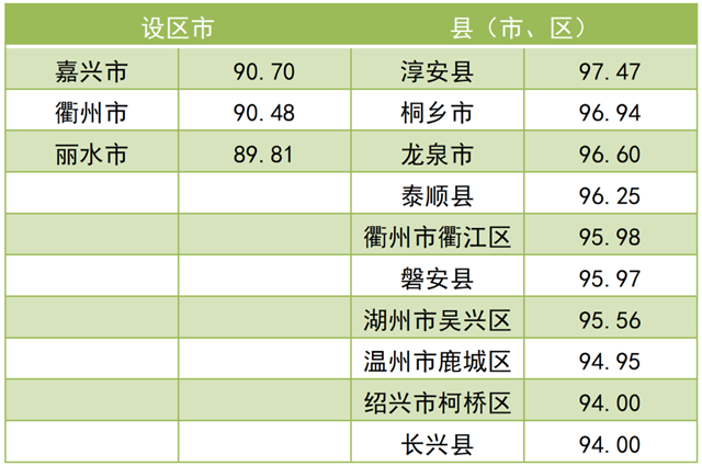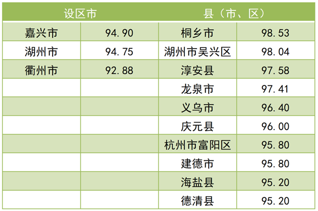 調(diào)查結(jié)果顯示,2021年全省“無廢城市”建設(shè)成效滿意度總得分為 79.97。其中,公眾滿意度總得分為76.84,企業(yè)滿意度總得分為92.50?,F(xiàn)將總得分和各維度得分靠前的3個設(shè)區(qū)市和10個縣(市、區(qū))作一公布。
