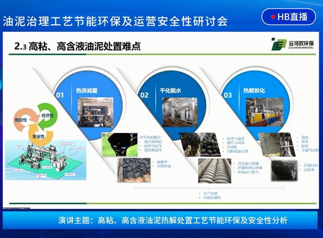 宜可歐環(huán)保于立松帶來(lái)的《高粘、高含液油泥熱解處置工藝節(jié)能環(huán)保及安全性分析》的演講則更進(jìn)一步,朝著油泥治理中更細(xì)分難度更高的領(lǐng)域深挖,聚焦高粘、高含液特性污泥這一痛點(diǎn),著重分析了處理過(guò)程中會(huì)遇到的問(wèn)題及宜可歐對(duì)此提供的高效解決方案。