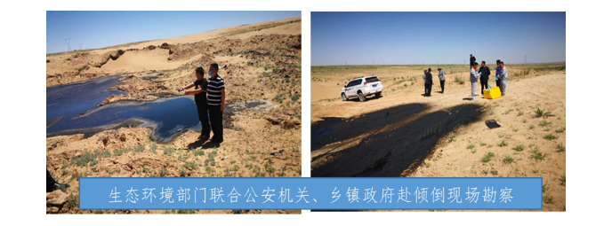 6月3日上午,為進(jìn)一步摸清傾倒現(xiàn)場(chǎng)情況,靈武生態(tài)環(huán)境分局執(zhí)法人員聯(lián)合馬家灘鎮(zhèn)和靈武市公安局工作人員再次趕赴現(xiàn)場(chǎng)勘查,發(fā)現(xiàn)傾倒物為90余噸的黑色粘稠液體,占地面積約100平方米。靈武生態(tài)環(huán)境分局立即向銀川市公安局報(bào)案,并向靈武市政府和銀川市生態(tài)環(huán)境局匯報(bào)情況。