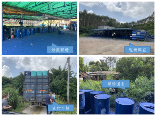 2021年7月至9月,高明區(qū)公安分局聯(lián)合佛山市生態(tài)環(huán)境局高明分局,在佛山市和肇慶市對(duì)非法處置廢包裝桶案件同步收網(wǎng),共查封窩點(diǎn)2個(gè),涉案企業(yè)2家。經(jīng)鑒定,加工廠現(xiàn)場(chǎng)的貯存池廢液、桶裝廢液及部分廢空桶均屬于危險(xiǎn)廢物,共約3.2噸。