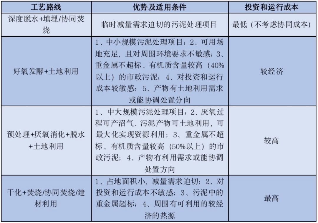 綜上所述,目前國內(nèi)污泥處理處置主要有以下4條主流工藝路線: