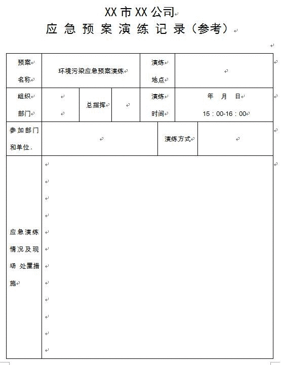 應(yīng) 急 預(yù) 案 演 練 記 錄(參考)