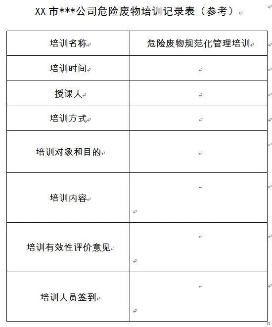 ▲ XX市***公司危險(xiǎn)廢物培訓(xùn)記錄表(參考)